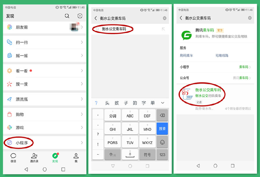 1、掃描上方二維碼或在微信小程序搜索“衡水公交乘車碼”。