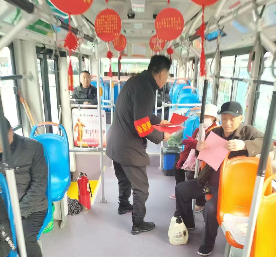 積極宣傳“文明交通綠色出行”行動,以發(fā)放宣傳單的形式,倡導(dǎo)文明健康綠色環(huán)保生活方式,引導(dǎo)乘客文明乘車,乘車過程中主動為老、弱、病、殘、孕及懷抱嬰兒者讓座。